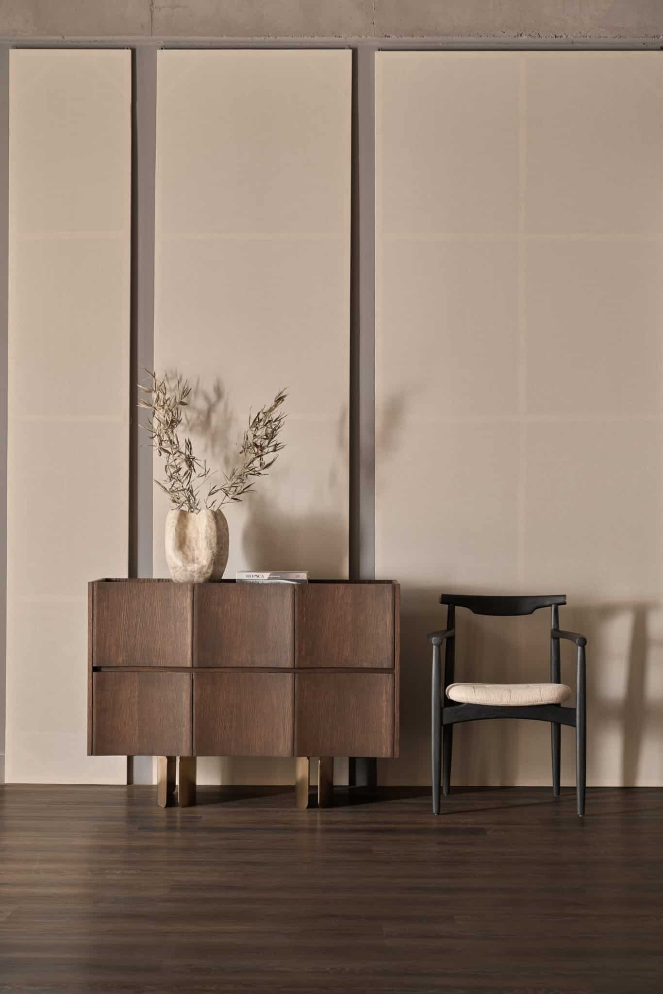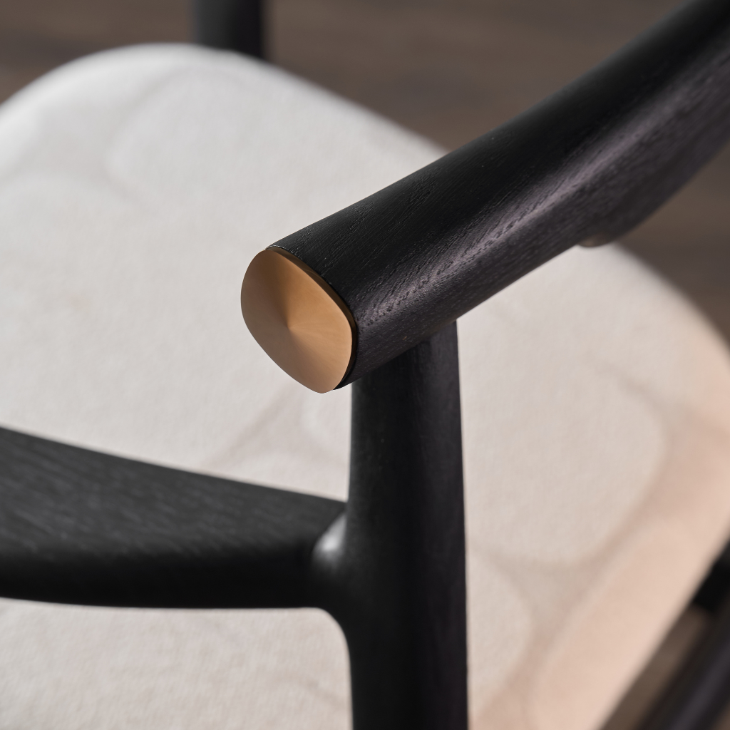 Lấy hình ảnh chú trâu – biểu tượng của sức mạnh, sự bền bỉ và hiền hòa trong văn hóa Á Đông – làm cảm hứng tạo hình, Buff Dining Chair là mẫu ghế ăn cao cấp mang đến vẻ đẹp vững chãi, mộc mạc nhưng đầy tinh tế cho không gian sống. Thiết kế nổi bật với phần tay vịn cong nhẹ như cặp sừng trâu, phần khung vững vàng, mặt ngồi rộng rãi – gợi cảm giác khỏe khoắn, đằm thắm và thân thiện. Hình khối của ghế được tiết chế chi tiết, chú trọng tỷ lệ, tạo nên một tổng thể hài hòa giữa chức năng và biểu cảm.