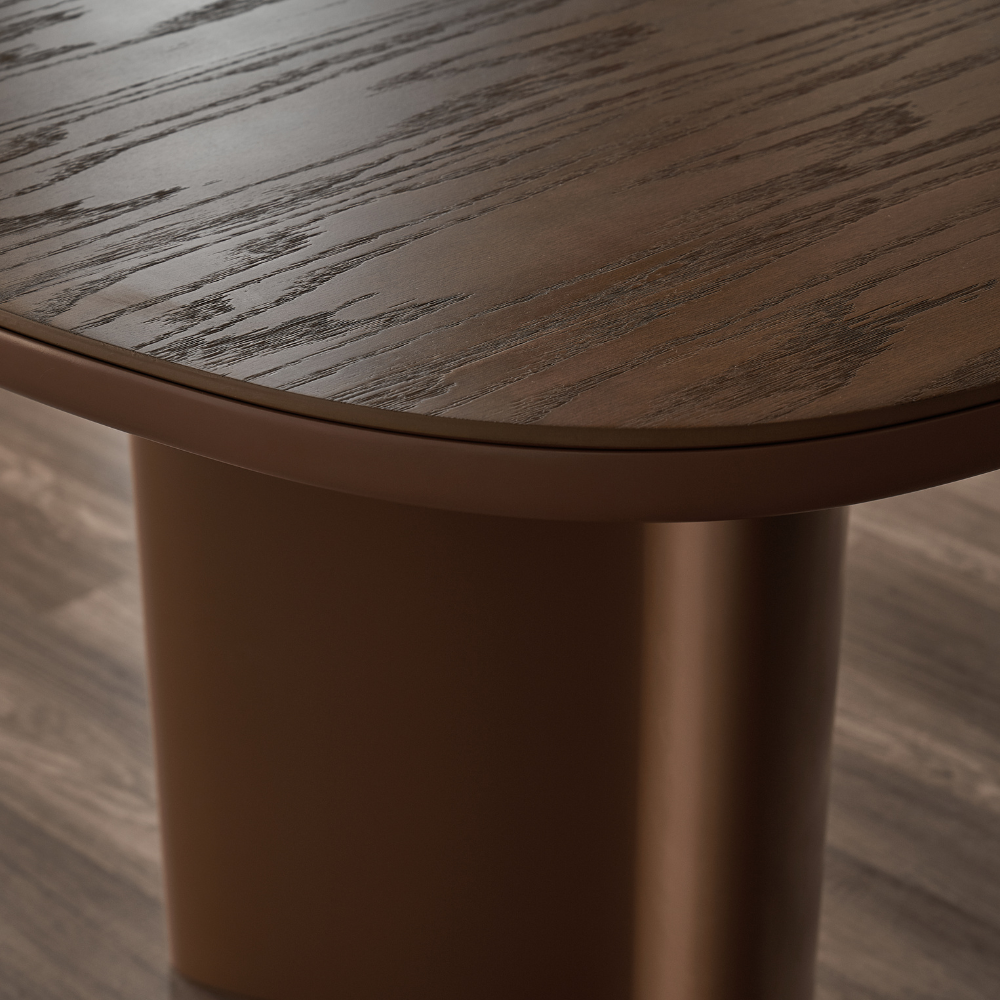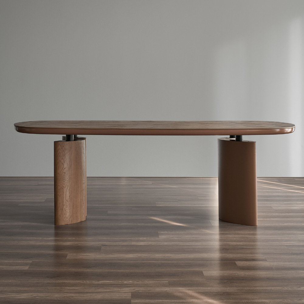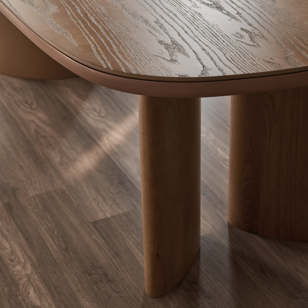 Với chất liệu chính là gỗ sồi, Diff Dining Table không chỉ bền bỉ mà còn giữ được sự mộc mạc và tự nhiên. Gỗ sồi được chọn lọc kỹ lưỡng để đạt được độ hoàn thiện cao, thể hiện sự tinh tế trong từng đường nét và bề mặt của bàn ăn. Bên cạnh đó, đá Tây Ban Nha được sử dụng làm mặt bàn, nổi bật với độ bền và tính thẩm mỹ vượt trội, mang lại một vẻ đẹp sang trọng và hiện đại. Kết hợp hài hòa với phần chân bàn làm từ các vật liệu như thép, inox, hay gỗ, Diff Dining Table mang đến sự linh hoạt trong việc lựa chọn và thay đổi, tùy thuộc vào nhu cầu và không gian sử dụng.