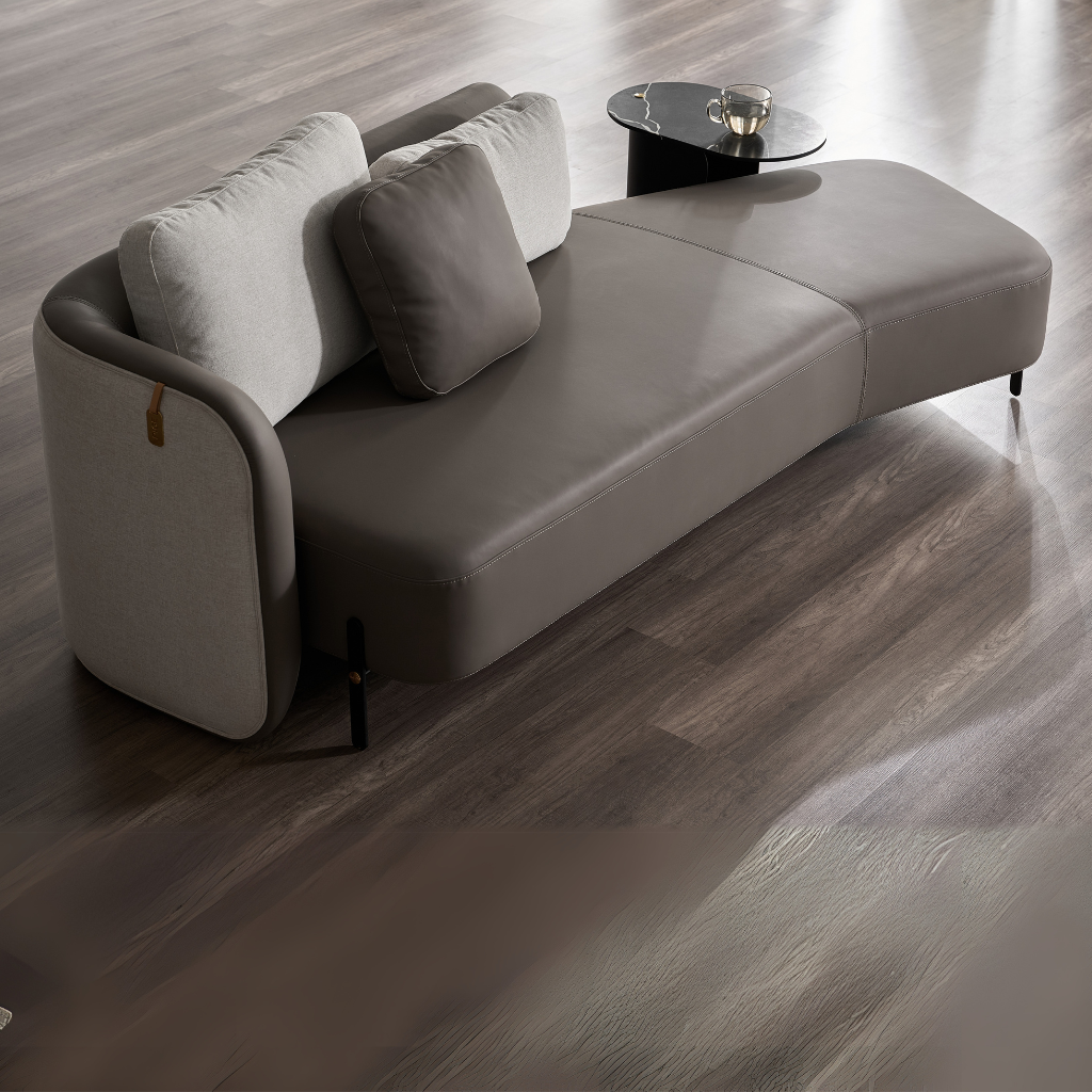 Với chất liệu da microfiber cao cấp cho phần lưng tựa và tay ghế, Flot Chaise Lounge có vẻ ngoài sang trọng nhưng vẫn mềm mại, dễ chịu khi sử dụng. Da microfiber dễ dàng vệ sinh và giữ sofa luôn sạch sẽ, bền đẹp qua thời gian. Đệm ngồi và tựa lưng được bọc vải mềm mại, với các màu sắc nhẹ nhàng như be và nâu nhạt, giúp tạo cảm giác thoải mái, thư giãn tối đa cho người sử dụng. Khung chân ghế được làm từ kim loại mảnh mai, bền bỉ, mang đến sự thanh thoát cho thiết kế nhưng vẫn đảm bảo độ vững chắc cần thiết. Chất liệu kim loại này không chỉ góp phần làm tăng tính hiện đại mà còn giúp sofa có sự ổn định, bền vững theo thời gian. Điểm nhấn sang trọng của Flot Chaise Lounge nằm ở chi tiết tag đồng mạ vàng 24k, vừa là sự bổ sung cho vẻ đẹp tinh tế vừa thể hiện đẳng cấp và sự chăm chút đến từng chi tiết. Chi tiết này làm tăng giá trị thẩm mỹ và độ nổi bật cho sản phẩm.