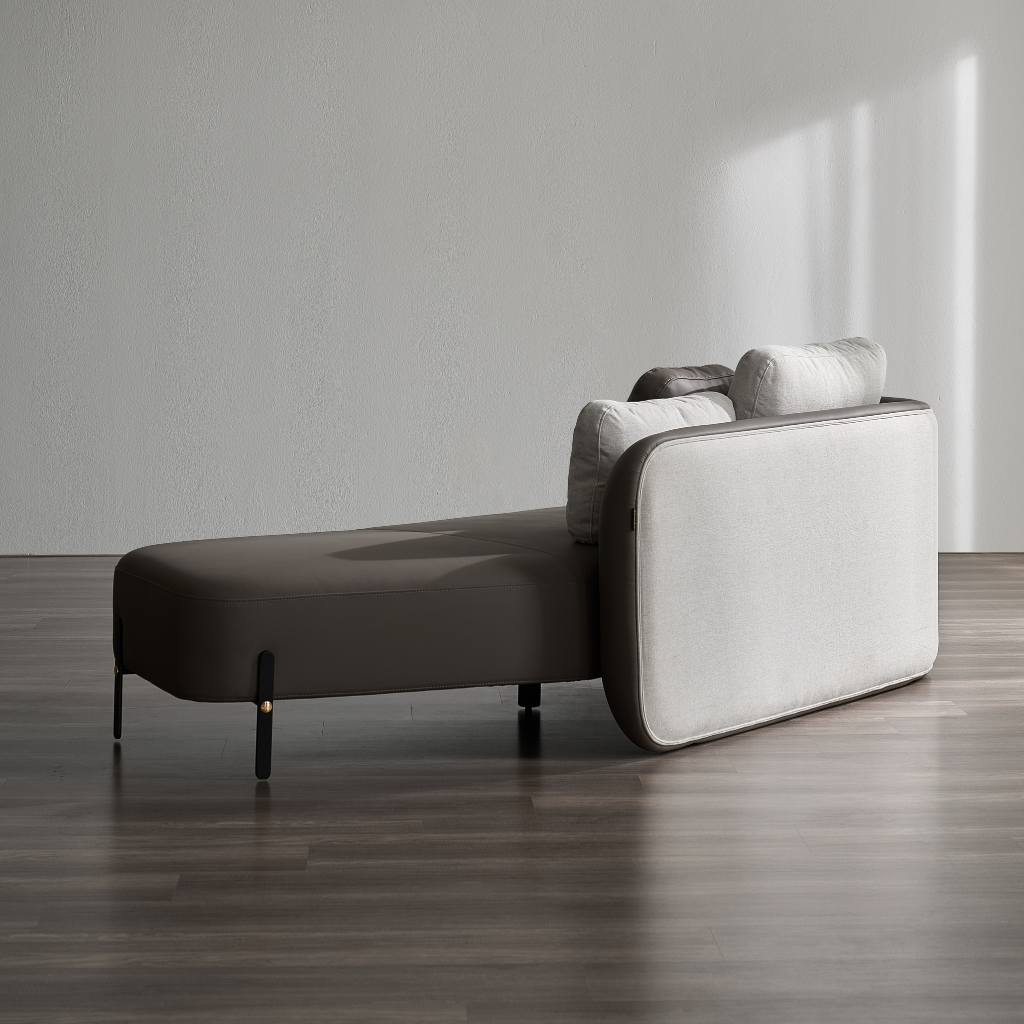 Flot Chaise Lounge là lounge thuộc BST The Lover, thiết kế cong mềm mại, thanh lịch, kết hợp tinh tế giữa vải, da và kim loại