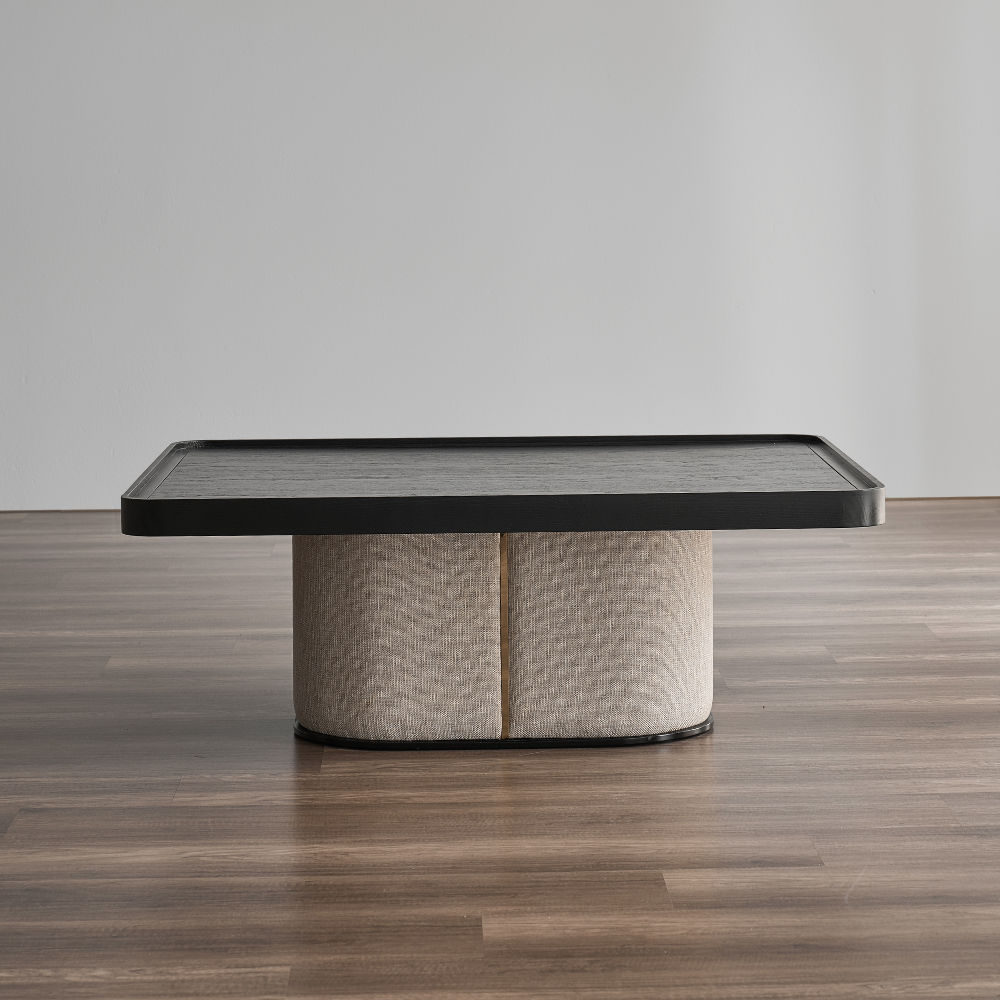 Mặt bàn được chế tác từ gỗ tự nhiên, giữ nguyên vẻ đẹp mộc mạc nhưng không kém phần sang trọng. Gỗ có độ bền cao, kết hợp hoàn hảo với chân bàn bọc vải Bồ Đào Nha cao cấp, tạo điểm nhấn độc đáo với hai đường xẻ rãnh tinh tế. Sự kết hợp giữa gỗ và vải giúp Mand Coffee Table có độ tương phản thú vị về chất liệu, tạo nên hiệu ứng thị giác ấn tượng.