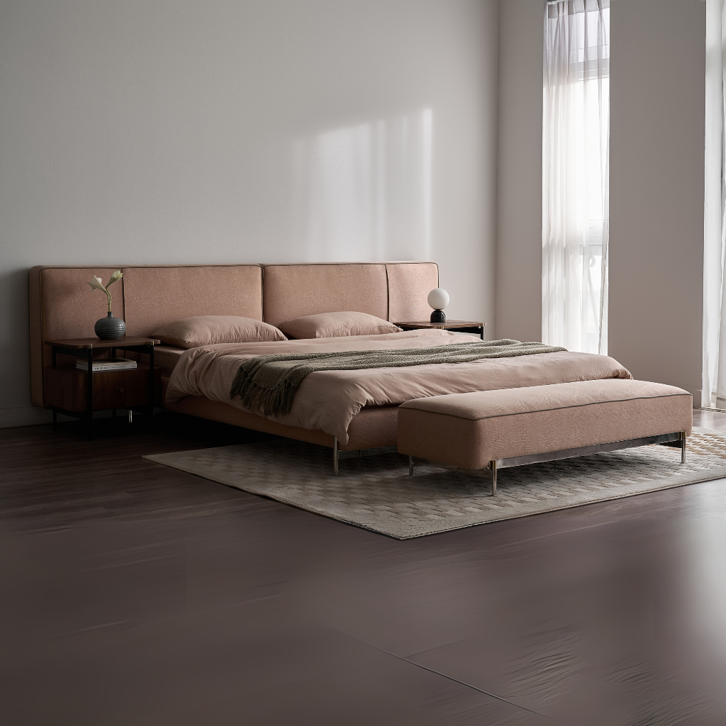 Mono Bed theo đuổi phong cách tối giản, hiện đại với các đường nét gọn gàng, tinh tế. Thiết kế phần đầu giường linh hoạt, có thể kéo dài để kết hợp với bàn trang điểm hoặc nightstand, tạo sự hài hòa trong tổng thể không gian. Các chi tiết hoàn thiện tỉ mỉ như đường may nổi hay bọc vải cao cấp giúp tôn lên vẻ sang trọng của sản phẩm.