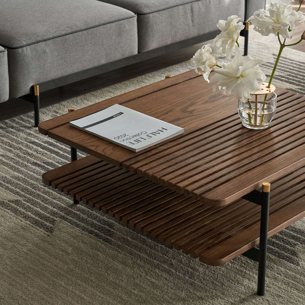 Perso Coffee Table có thiết kế hai tầng, không chỉ tối ưu hóa không gian lưu trữ mà còn cung cấp thêm diện tích để trang trí các vật dụng như sách, tạp chí, hoặc đồ trang trí. Đây là một thiết kế thông minh giúp căn phòng của bạn trở nên gọn gàng và có điểm nhấn, đồng thời giữ cho không gian luôn ngăn nắp và tiện dụng.