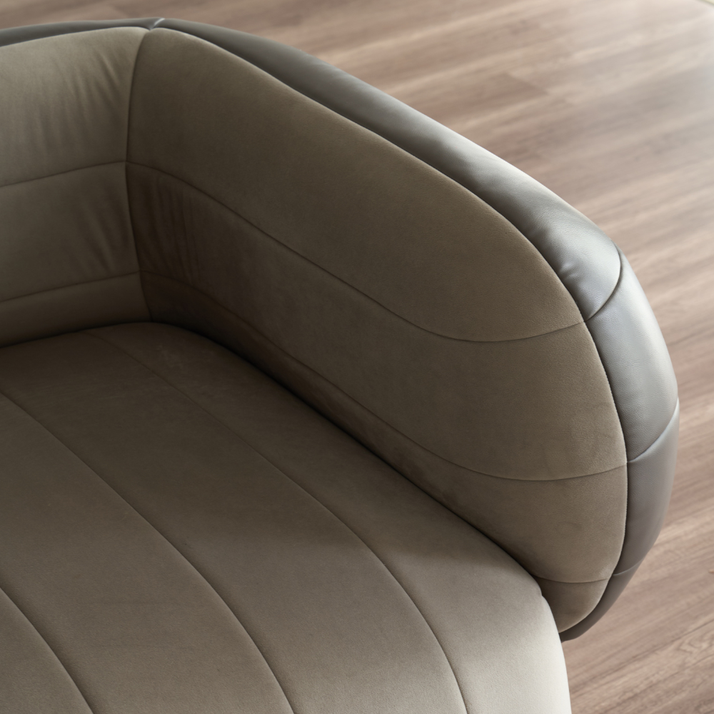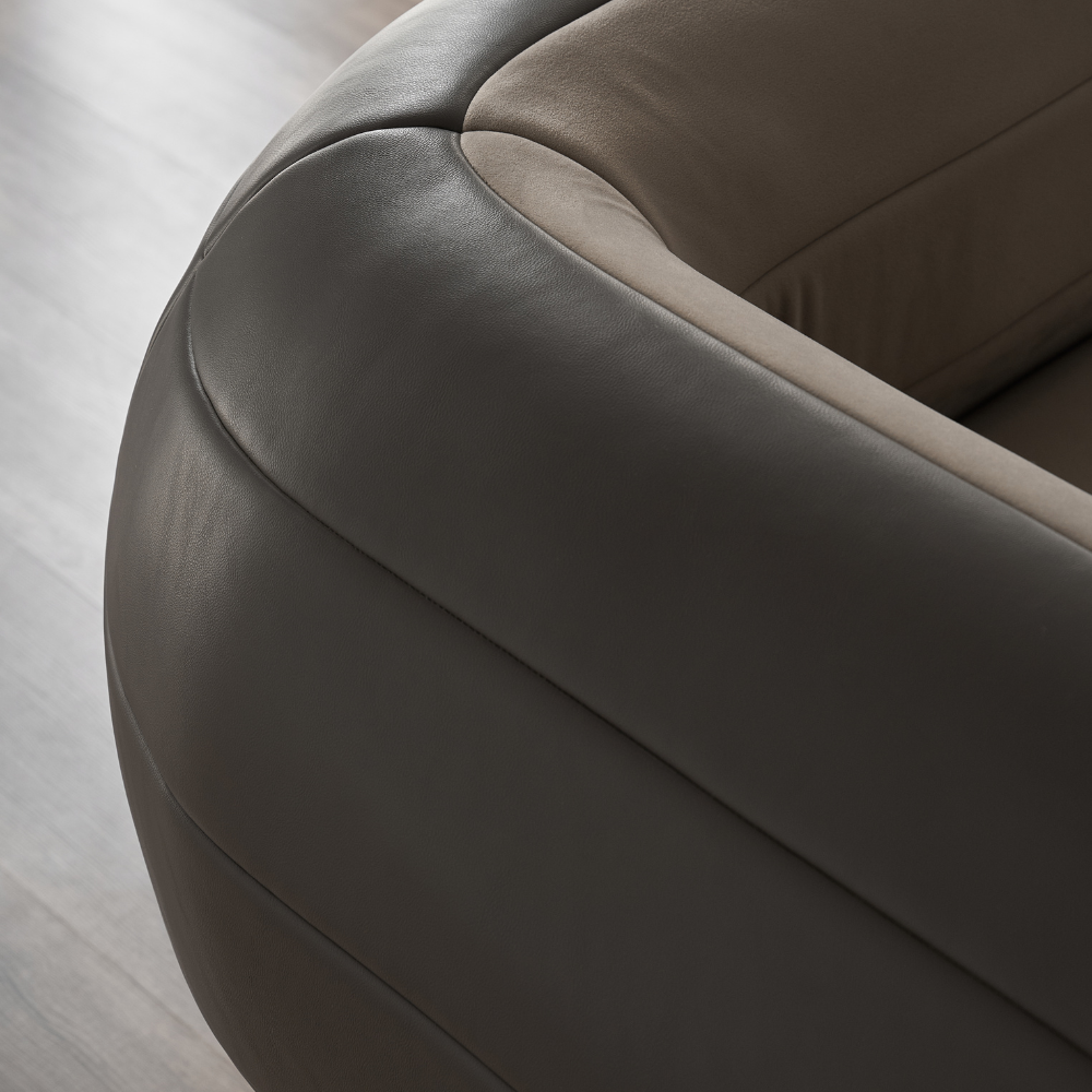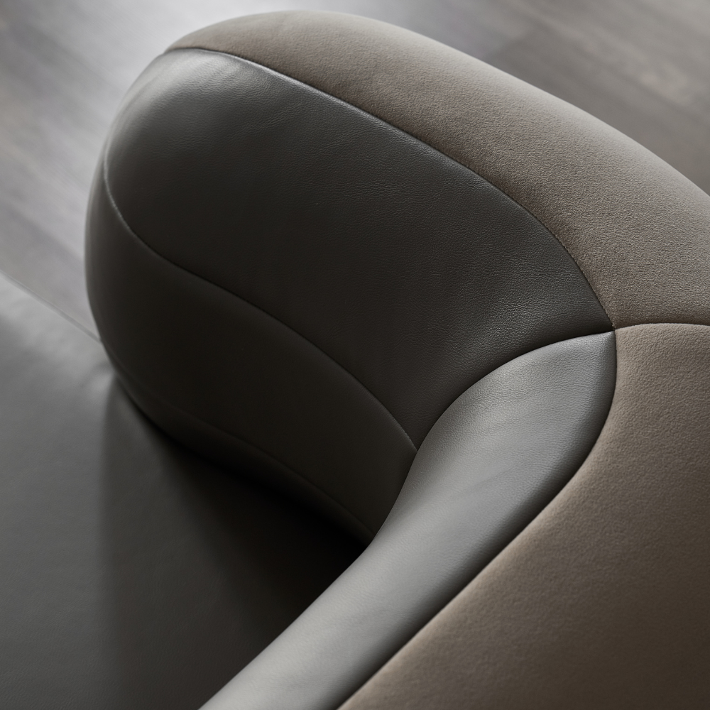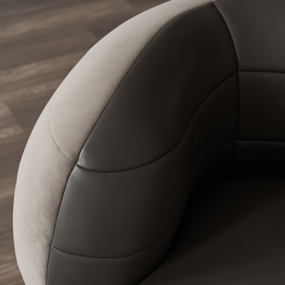 Về vật liệu, phần ngồi của Shell I Sofa được bọc bằng da Microfiber cao cấp, sử dụng công nghệ thuộc da thảo mộc, mang lại sự sang trọng đồng thời đảm bảo an toàn cho sức khỏe. Da Microfiber không chỉ bền bỉ mà còn dễ dàng vệ sinh, giúp duy trì vẻ đẹp của sản phẩm theo thời gian. Phần lưng và tay tựa ghế được bọc vải Bồ Đào Nha mềm mại, mang lại cảm giác êm ái và sự thoải mái tuyệt vời trong suốt thời gian sử dụng.