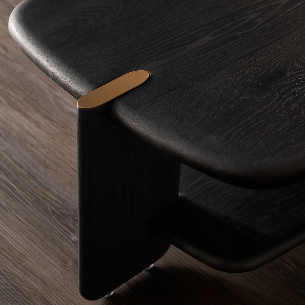 Các khối gỗ sồi tự nhiên được đan cài vào nhau theo bố cục bất đối xứng – gợi liên tưởng đến cách hai cơ thể gắn bó mà không hòa tan trong tác phẩm gốc. Mặt bàn là tập hợp các đường cong mềm mại, như biểu hiện của sự uyển chuyển, dịu dàng và tình cảm. Kết cấu chân bàn độc đáo được đặt lệch trục, tạo hiệu ứng thị giác sinh động nhưng vẫn vững chãi – vừa như một tác phẩm điêu khắc, vừa đảm bảo công năng sử dụng.