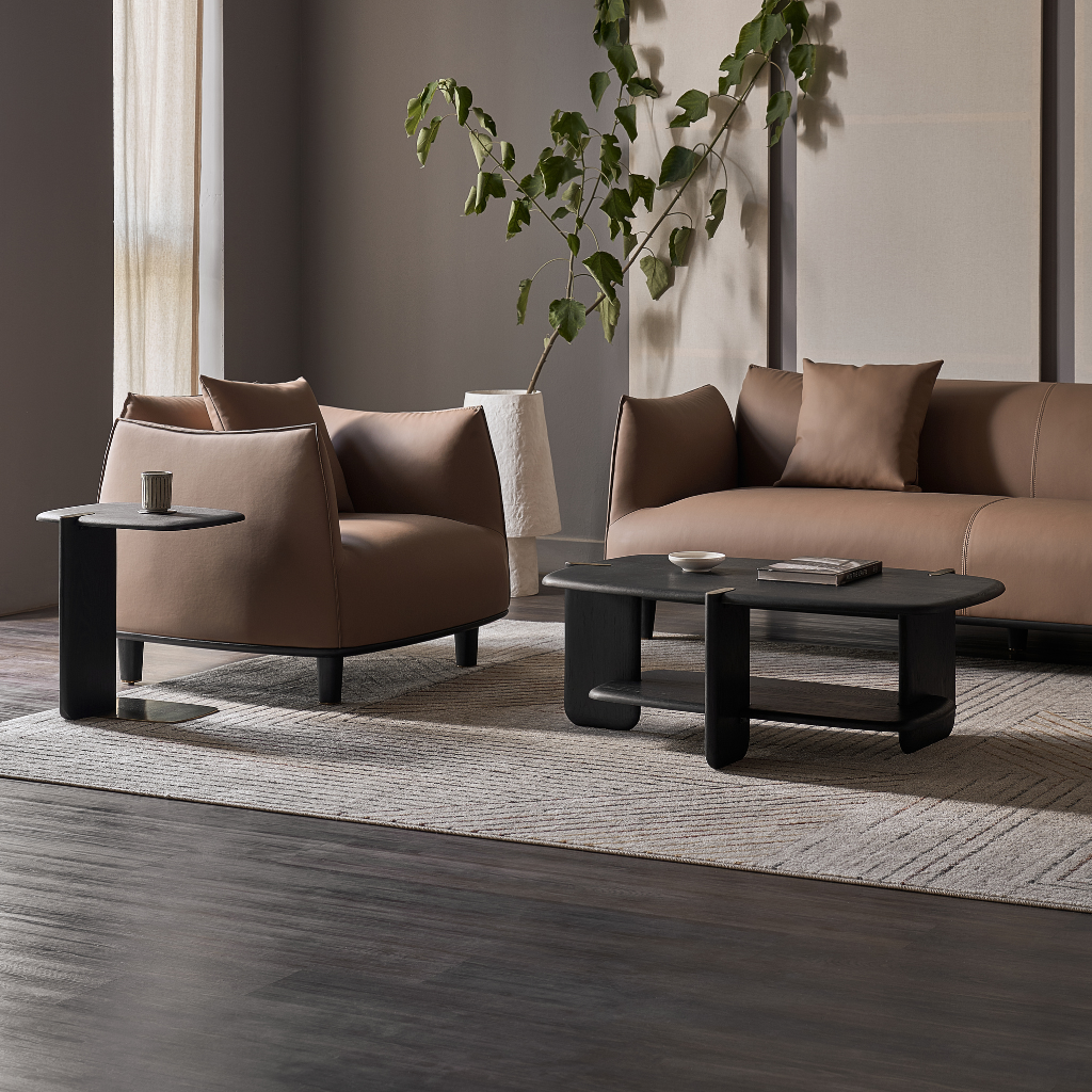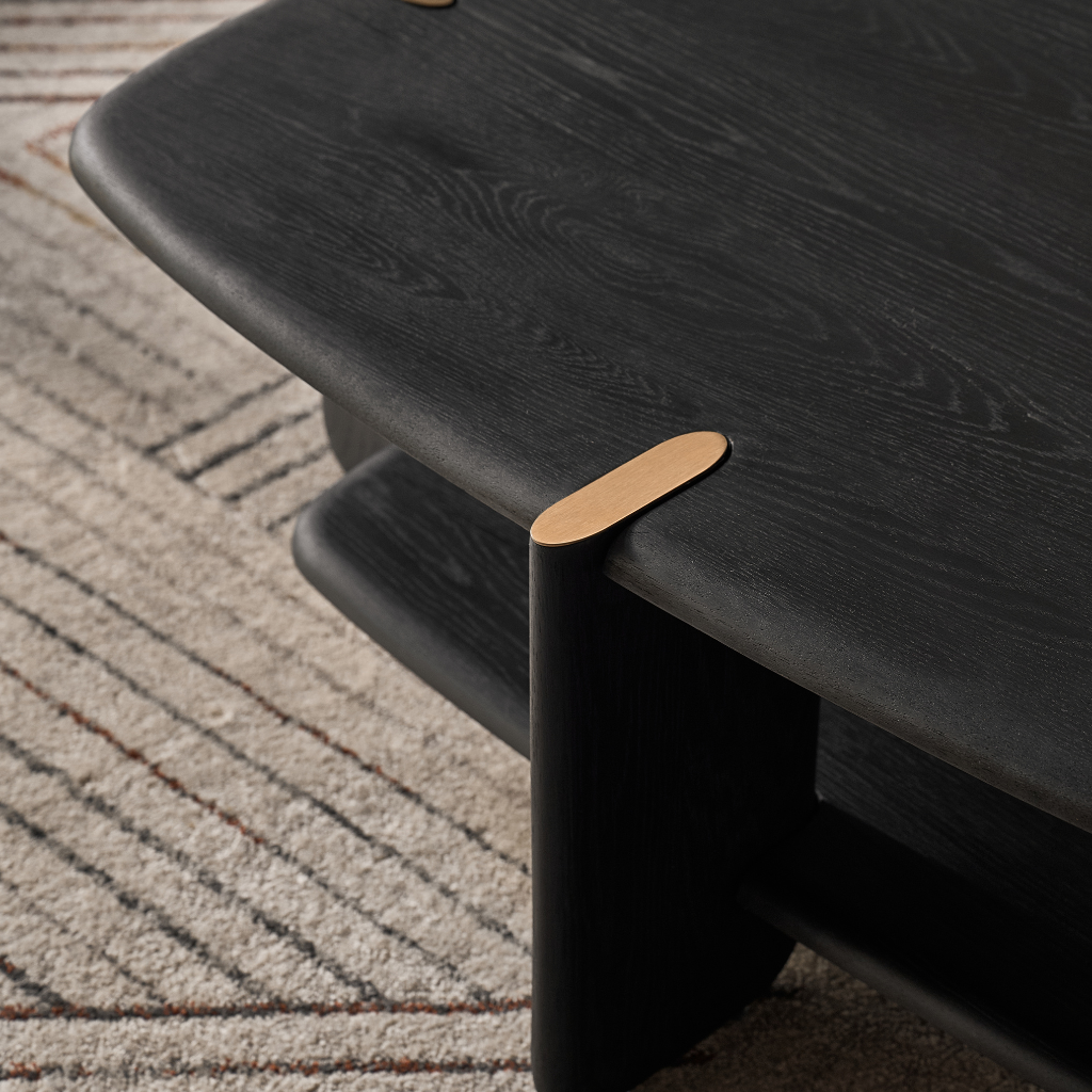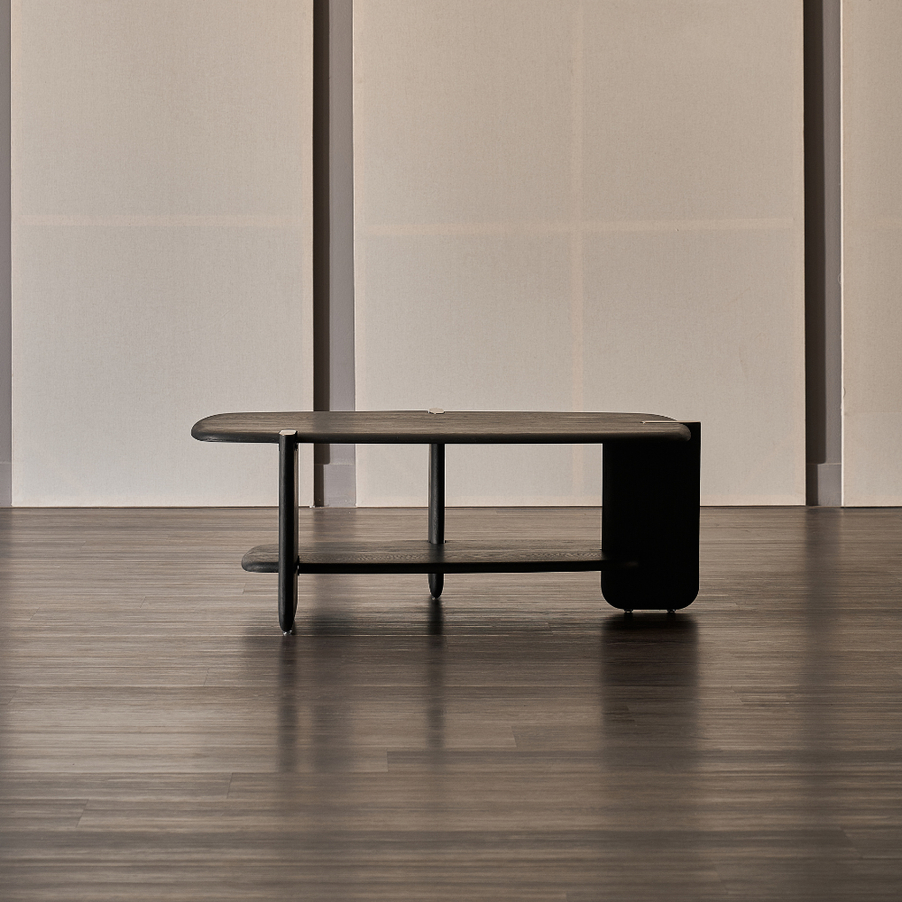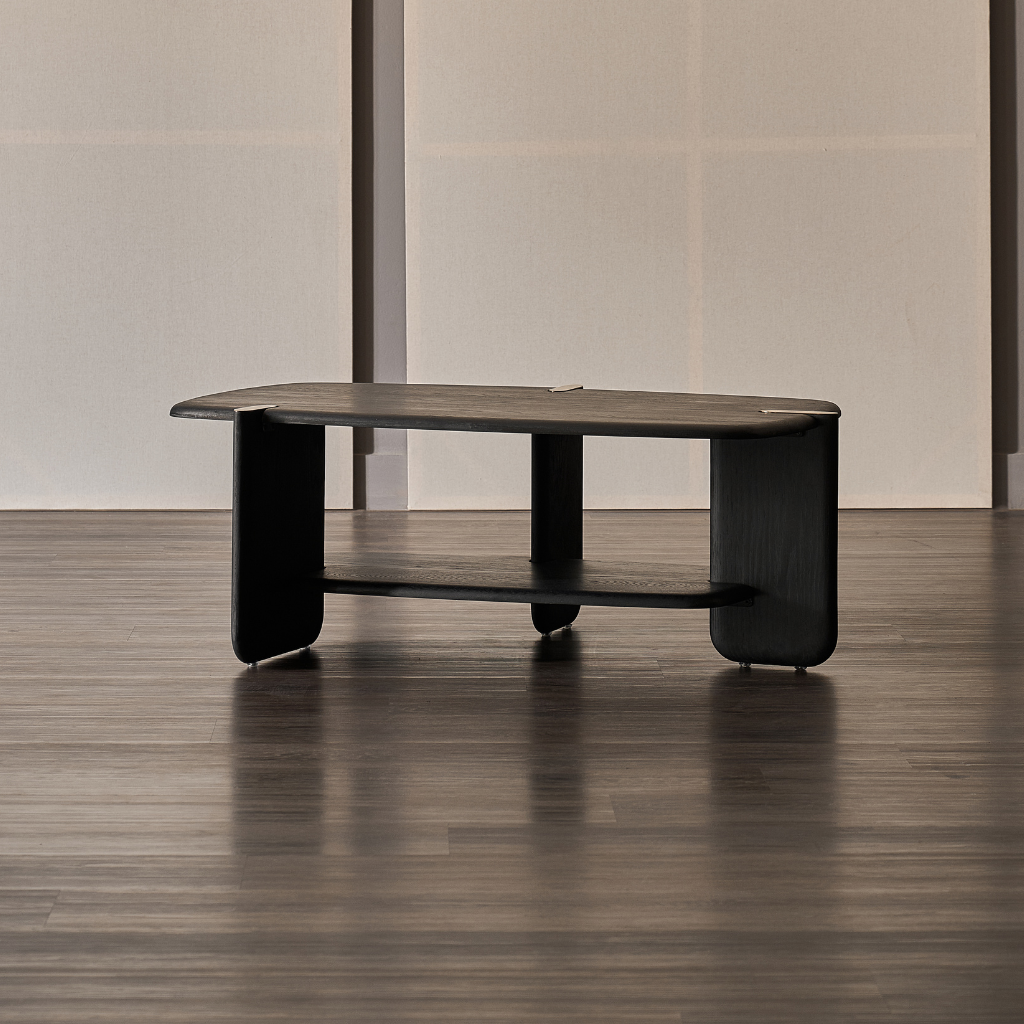 The Kiss còn là bàn trà hai tầng, giúp tối ưu không gian lưu trữ cho phòng khách thêm gọn gàng. Các chi tiết kim loại tại điểm giao kết giữa chân bàn và mặt bàn được xử lý tinh tế, như một điểm sáng nghệ thuật hiện đại, làm nổi bật sự chỉn chu trong từng chi tiết.